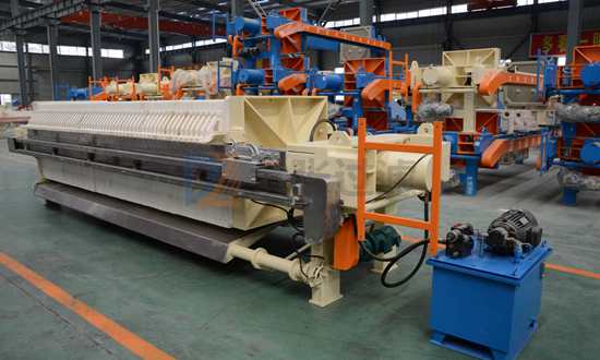 3000套液壓壓緊板框式壓濾機由主機(機架和濾室)、液壓部件和電氣等部分組成。